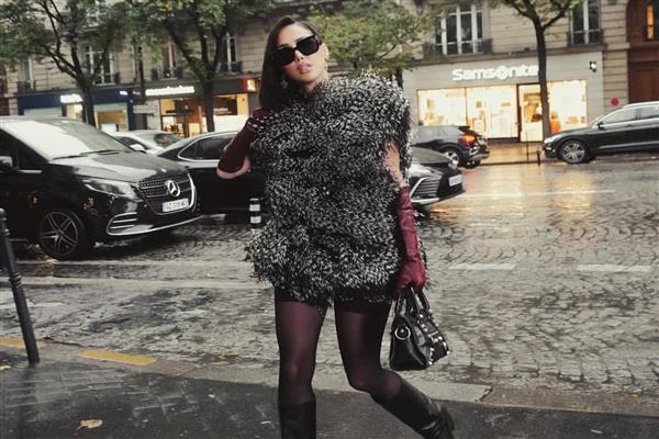 خطفت بسمة بوسيل الأنظار في أسبوع الموضة في باريس بإطلالة جريئة ارتدت فيها فستانا قصيرا مزينا بالريش، ونسقته مع قفازات طويلة باللون الأحمر الداكن ونظارات شمسية سوداء أضافت لمسة عصرية على اللوك. ونشرت بوسيل صور إطلالتها عبر حسابها على “انستجرام ”.