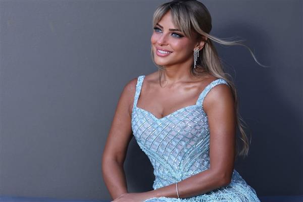 فستان سماوي أنيق يزين إطلالة ريم مصطفى