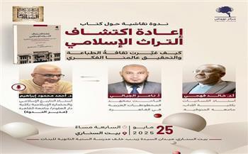 يستضيف بيت السناري ندوة عنوانها "إعادة اكتشاف التراث الإسلامي" التي ينظمها مركز نهوض للدراسات والبحوث، اليوم الأحد 25 مايو الجاري، في تمام السابعة مساءً.