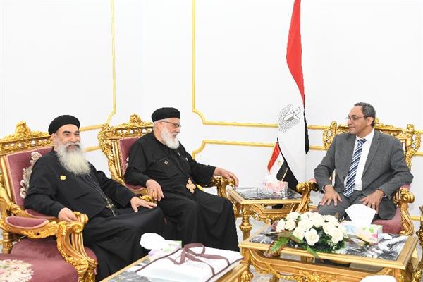 جاء ذلك خلال استقبال المحافظ اليوم السبت وفودًا من كنائس المحافظة لتقديم التهنئة بمناسبة عيد الفطر المبارك، ضمت نخبة من القيادات الكنسية بالمحافظة، وعلى رأسهم نيافة الأنبا بيمن مطران نقادة وقوص، والأنبا تكلا مطران دشنا، والأنبا بضابا أسقف نجع حمادي، والأنبا عمانوئيل مطران الأقباط الكاثوليك بمحافظات قنا والأقصر وأسوان والبحر الأحمر، والأب ماركو ناجي وكيل عام المطرانية، والأب مرتس سليمان راعي كنيسة هروب العائلة المقدسة بقنا، إلى جانب السيدة كاترين ثروت مدير مدرسة الراهبات الفرانسيسكانيات، والأخت تريزينا حنا، والقُمص بيسوي ناروز، والقُمص أنطونيوس حلمي، والقُمص رويس ممثلين عن مطرانية قنا نيابة عن الأنبا شاروبيم.