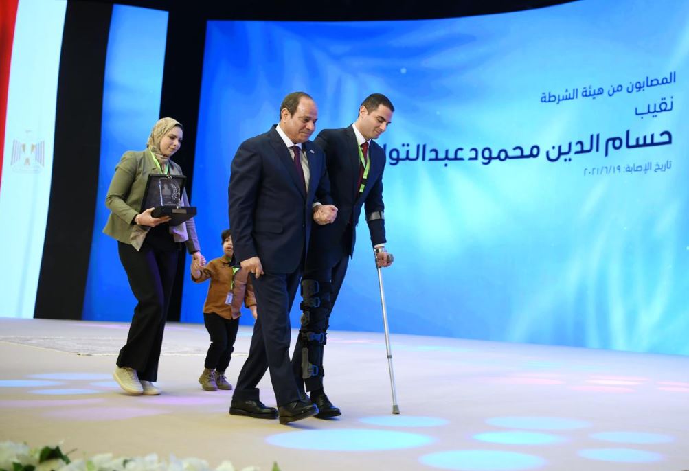 وكرم السيد الرئيس عبد الفتاح السيسي، مجموعة من أهالي شهداء ومصابي القوات المسلحة والشرطة، خلال حفل عيد الفطر، وفى لافتة إنسانية، حرص الرئيس عبد الفتاح السيسي رئيس الجمهورية على مساعدة مصابى الشرطة خلال تكريمهم بحفل عيد الفطر.