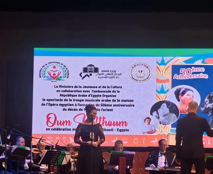 واصلت الثقافة المصرية احتفالاتها العالمية بالذكرى الخمسين لرحيل كوكب الشرق، وخلال ذلك أقامت دار الأوبرا برئاسة الدكتور علاء عبد السلام أمسية إبداعية وذلك بالتعاون مع الإدارة المركزية للعلاقات الثقافية الخارجية برئاسة الدكتورة رانيا عبد اللطيف وسفارة مصر بجمهورية جيبوتي والسفير خالد الشاذلى رئيس البعثة الدبلوماسية المصرية بجيبوتي.