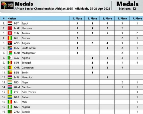 وفي الخماسي الحديث، توج معتز وائل بذهبية فردي الرجال، وفازت فريدة أبو هاشم بفضية فردي السيدات في منافسات كأس العالم بالمجر 2025.