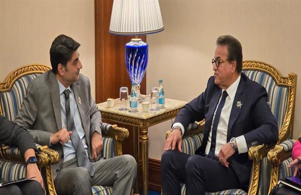 التقى الدكتور خالد عبدالغفار، نائب رئيس مجلس الوزراء وزير الصحة والسكان، السيد سيد مصطفى كمال، وزير الصحة الباكستاني، على هامش القمة الوزارية العالمية السادسة للصحة النفسية، المنعقدة في العاصمة القطرية الدوحة.