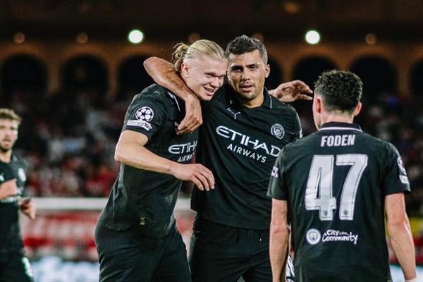تقدم مانشستر سيتي بهدف هالاند في الدقيقة 15 وتعادل موناكو بعد 3 دقائق عن طريق جوردان تيزيه .
