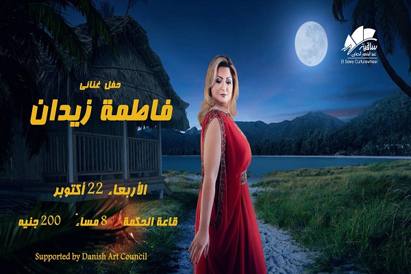 تُحيي الفنانة فاطمة زيدان حفلاً غنائيًا يوم الأربعاء الموافق 22 أكتوبر، في تمام الساعة الثامنة مساءً، وذلك على مسرح قاعة الحكمة بساقية عبد المنعم الصاوي.