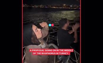 ووثق الفيديو، اللحظة التي تقدم فيها  شاب لخطبة حبيبته على متن قارب في مضيق البوسفور في أجواء رومانسية وسط مياه البحر وتحت ضوء القمر، في وقت يمر فيه مجموعة من السياح المصريين بالجوار.
