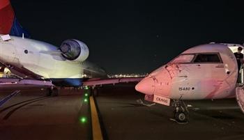 وثق مقطع فيديو مشهدًا غير مألوف للحظة تصادم بين طائرتين تابعتين لشركة "دلتا"، داخل مطار "لا غارديا" في مدينة نيويورك الأمريكية.