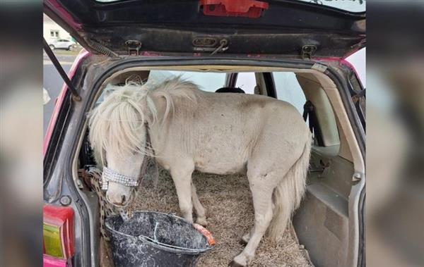 فوجئ رجال الشرطة في ألمانيا بمشهدًا غريبًا، حينما اكتشفوا أن سيدة تقوم بنقل حصان من نوع شتلاند في المقعد الخلفي لسيارتها الوردية.