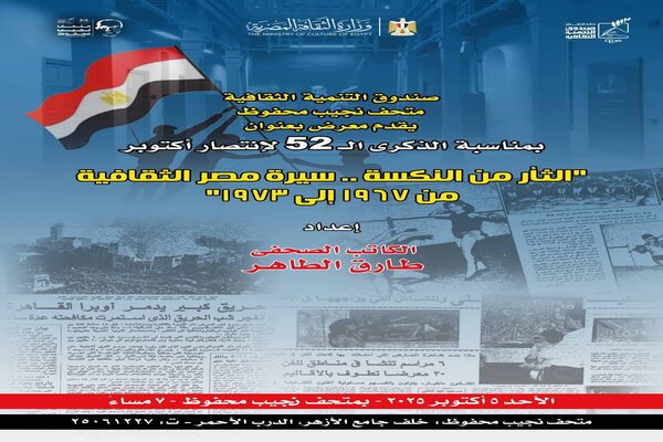 ويسبق المحاضرة افتتاح معرض وثائقي بعنوان "الثأر من النكسة.. سيرة مصر الثقافية من 1967 إلى 1973"، إعداد الكاتب الصحفي طارق الطاهر، المشرف على متحف ومركز إبداع نجيب محفوظ.
