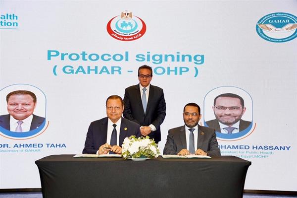قام بتوقيع البروتوكول عن الهيئة الدكتور أحمد طه، رئيس الهيئة، وعن الوزارة الدكتور محمد حساني، مساعد وزير الصحة لشؤون مشروعات ومبادرات الصحة العامة.