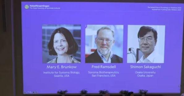 أعلنت الأكاديمية الملكية السويدية،اليوم /الاثنين/، منح جائزة نوبل في الطب للأمريكيين ماري إي برونكو و فريد رامسديل، والياباني شيمون ساكاجوتشي، وذلك لأبحاثهم في مجال التحكم في الجهاز المناعي .