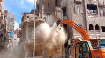حملات لإزالة الأجزاء القابلة للسقوط بالعقارات بأحياء الإسكندرية