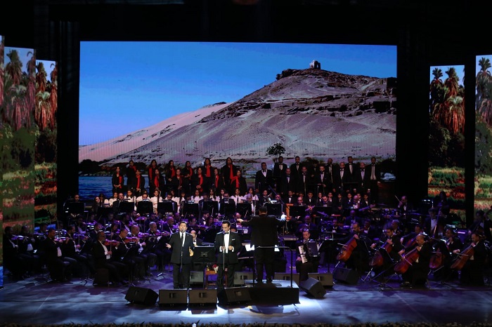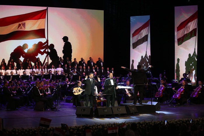 وتغنى بالحفل أصوات كوكبة من نجوم مصر هم محمد ثروت، محمد الحلو، هاني شاكر ومن مطربي الموسيقى العربية بالأوبرا وليد حيدر، رحاب عمر، محمد حسن، غادة آدم، حسام حسنى، حنان عصام لتُضاء القلوب بذكريات ملحمة العبور وتنبض الألحان بتاريخ محفور في الذاكرة وتتعالى في جنبات منصة العرض تراتيل الوفاء للوطن والتي عبرت عنها الأغاني والألحان ..السلام الوطني، خلي السلاح صاحي، أوبريت الأرض الطيبة، يا بوي يا مصر، أهيم شوقًا، مصر يا أول نور في الدنيا، يا حبيبتي يا مصر، كل بلاد الدنيا جميلة، عاشت بلادنا، يا أغلى اسم، وانت ماشى في مصر، مصر هي أمي، بالأحضان، دويتو بلدي، احلف بسماها وصاحبها مشاهد فيلمية ووثائقية حكت قصة العبور العظيم من لحظات التحدي إلى ساعة النصر وأخرجها مهدى السيد.
