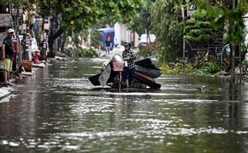 وذكرت شبكة "تشانيل نيوز آشيا" في نشرتها الناطقة بالإنجليزية اليوم /الأربعاء/ أن الفيضانات تسببت في محاصرة أو فرار عشرات الآلاف من الأشخاص من منازلهم، وذلك بعدما وصلت المياه إلى قمم السيارات أو أسطح المنازل في مدينة "تاي نجوين" التي تبعد نحو 80 كيلومترا شمال العاصمة "هانوي".