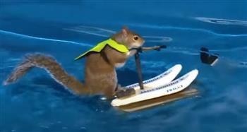 وثق مقطع فيديو نشرته وسائل إعلام عالمية مشهدًا لا يُصدق لسنجاب يبهر الجميع بعرض مميز للتزلج على الماء.