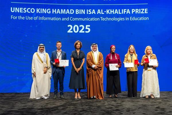 وأقيم حفل التكريم في مملكة البحرين بحضور السيدة أودري أزولاي، المديرة العامة لمنظمة الأمم المتحدة للتربية والعلم والثقافة (اليونسكو)، لتكريم الفائزين الأربعة بهذه النسخة من الجائزة، بعد منافسة قوية بين مشروعات مقدمة من أكثر من ٤٠ دولة حول العالم.