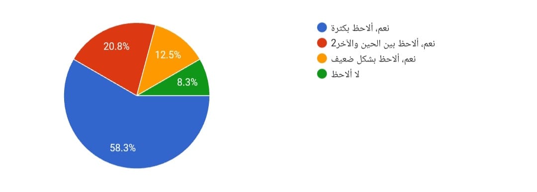 ووفقًا لنتائج الاستبيان، أكد 58.3% من المشاركين أنهم يلاحظون انتشار «الإسكوتر الكهربائي» بكثرة في مناطقهم، فيما قال 20.8% إنهم يلاحظونه بين الحين والآخر، وأشار 12.5% إلى أنه يظهر بشكل محدود، مقابل 8.3% لا يلاحظونه على الإطلاق.