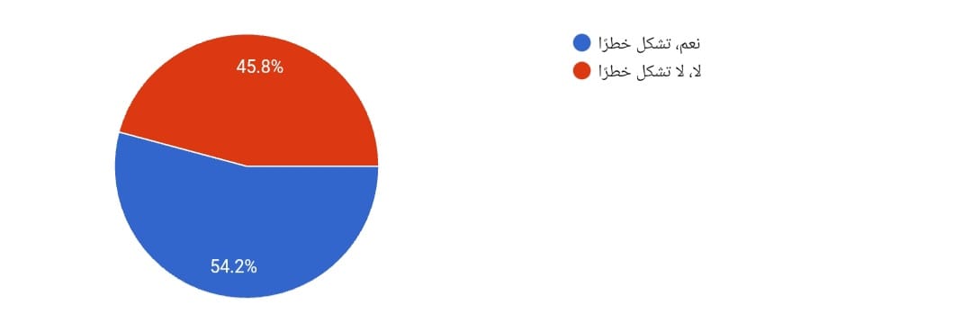 أما بشأن مدى خطورته على المجتمع، فقد رأى 45.8% من المشاركين أنه يشكل خطرًا على السلامة العامة، في حين اعتبر 54.2% أنه لا يمثل تهديدًا، ما يعكس تباينًا واضحًا في نظرة المواطنين لهذه الوسيلة الحديثة.