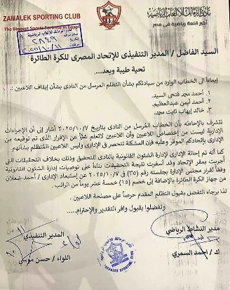 وأكد النادي أن الثلاثي لم يكن يستحق الإيقاف، وذلك كما يوضح المستند التالي: