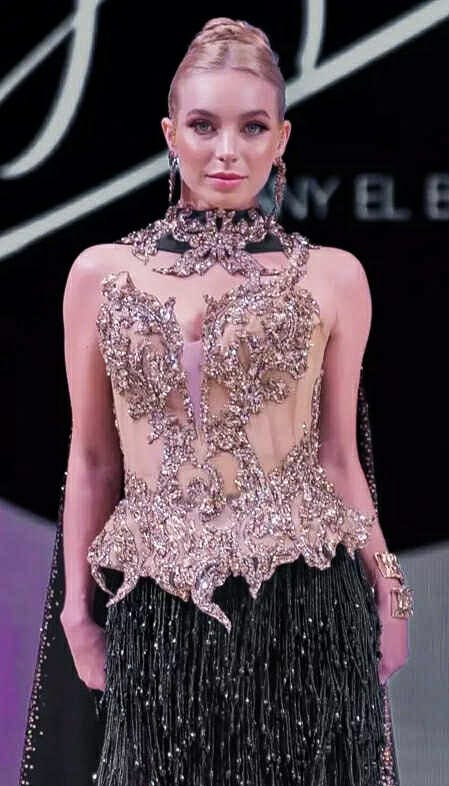 تألق مصمم الأزياء المصري العالمى هاني البحيري بديفيليه ضخم خطف الأنظار ضمن فعاليات الدورة الثامنة لمهرجان "عروس الخليج".