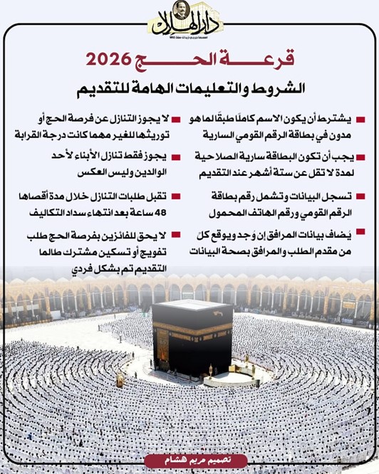 وأعلنت الوزارة البدء في قبول طلبات التقدم لحج القرعة حتى يوم الثلاثاء 2025/10/28 بجميع مراكز وأقسام الشرطة بكافة مديريات الأمن أو من خلال الموقع الإلكتروني للإدارة العامة للشئون الإدارية على بوابة وزارة الداخلية عبر شبكة الإنترنت، أو من خلال الاتصال بالخدمة الصوتية المخصصة لذلك.