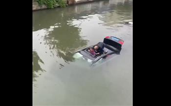 وفي الفيديو، ظهرت السيارة وقد سقطت بشكل مفاجئ في مجرى النهر وسط ذهول المارة، بينما كانت أبوابها مغلقة بإحكام، مما صعّب من عملية إنقاذ السائق.