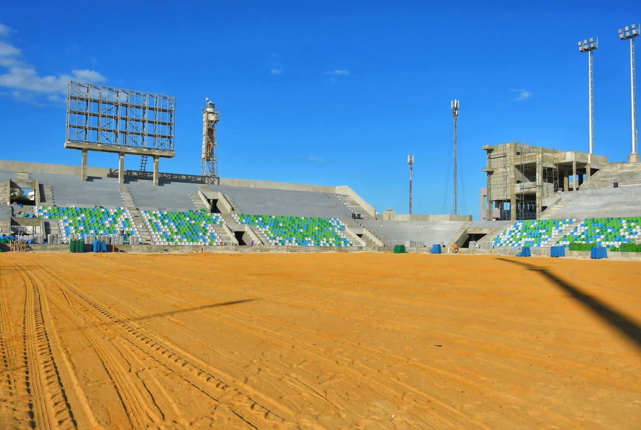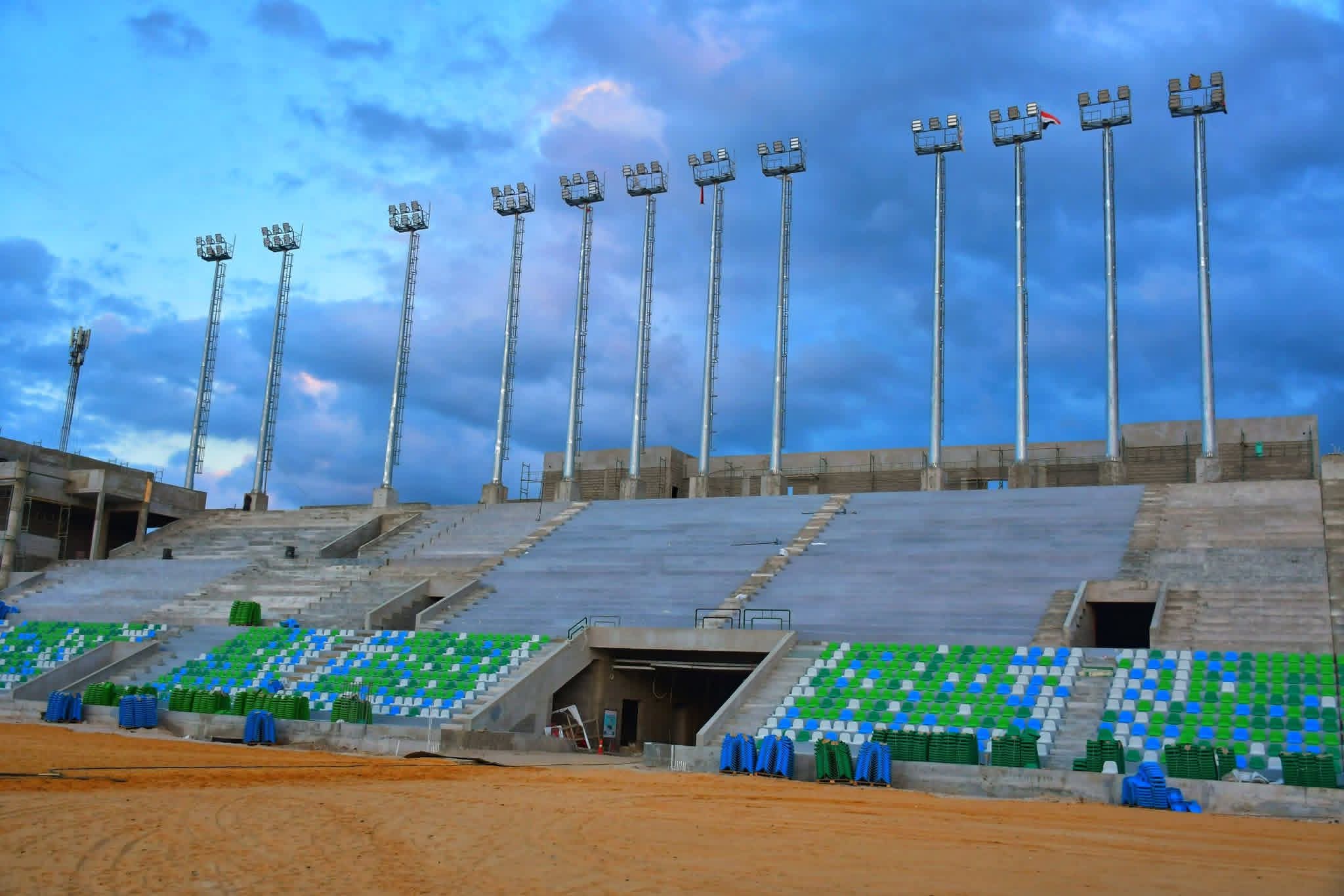 وفي السياق ذاته، تتواصل أعمال تأسيس تربة زراعة النجيل بالملعب الرئيسي، وفرز وتركيب الشاشات الإلكترونية، فضلًا عن التجهيز لتركيب آخر ٨ أعمدة إنارة بالملعب.