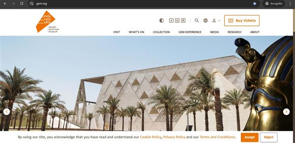 في إطار الاستعدادات المكثفة تمهيدًا للافتتاح المنتظر للمتحف المصري الكبير يوم 1 نوفمبر 2025، أطلقت وزارة السياحة والآثار اليوم الموقع الإلكتروني الرسمي الجديد للمتحف، والذي يمثل بوابة رقمية متكاملة تتيح للزائرين التعرف على المتحف ورؤيته ورسـالته وتاريخ إنشائه وشركائه ومجلس أمنائه، إلى جانب كل ما يقدمه من فعاليات وخدمات وتجارب فريدة من نوعها.