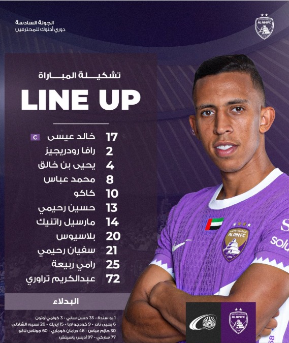 كشف الصربي فلاديمير إيفيتش، المدير الفني لفريق العين المحترف ضمن صفوفه رامي ربيعة مدافع منتخب مصر، التشكيل الأساسي الذي سيخوض به مباراة بني ياس، التي تنطلق فى الرابعة عصر اليوم السبت بملعب "هزاع بن زايد"، ضمن منافسات الجولة السادسة من عمر مسابقة الدوري الإماراتي.