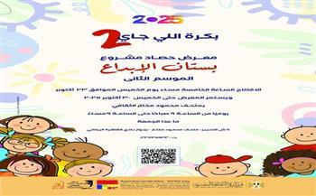 يفتتح الدكتور وليد قانوش رئيس قطاع الفنون التشكيلية، تحت رعاية أحمد فؤاد هنو وزير الثقافة، معرض "حصاد مشروع بستان الإبداع – الموسم الثاني" تحت عنوان "بكرة اللي جاي 2"، وذلك في الخامسة من مساء الخميس 23 أكتوبر بمركز محمود مختار الثقافي، 5 شارع التحرير بجوار نادي القاهرة الرياضي.