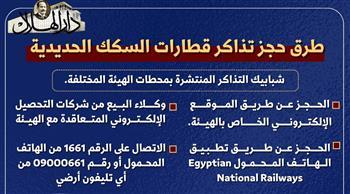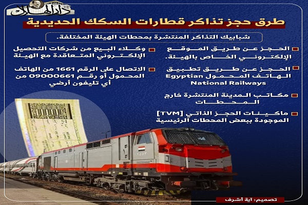 في إطار خطة وزارة النقل لتقديم أعلى مستويات الخدمة لجمهور الركاب، وفي ظل التحديث المستمر بكافة قطاعات النقل ومنها قطاع السكك الحديدية، تعلن الهيئة القومية لسكك حديد مصر عن إتاحة الحصول على تذاكر السفر على جميع القطارات وطرق الدفع من خلال عدد من الطرق المختلفة، وذلك تيسيراً على جمهور الركاب ولمواجهة التكدس أمام شبابيك التذاكر، حيث يمكن لجمهور الركاب الحصول على تذاكر السفر من خلال: