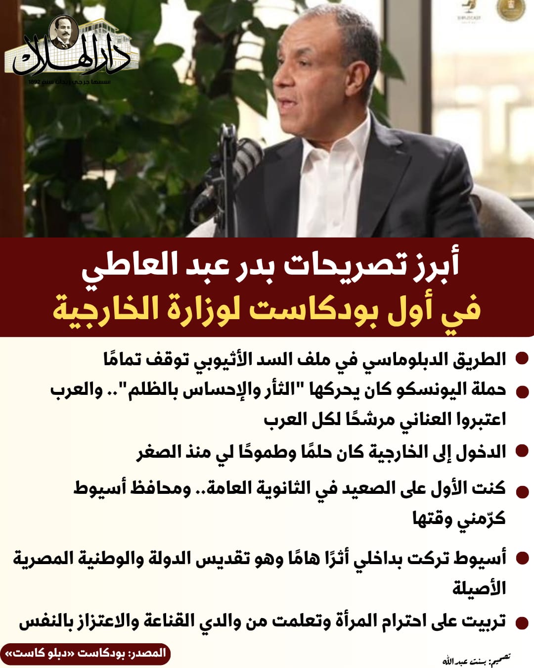 كما يتناول البودكاست التجارب الحياتية والمهنية للدبلوماسيين المصريين ويكشف عن جوانب مختلفة من العمل الدبلوماسي.