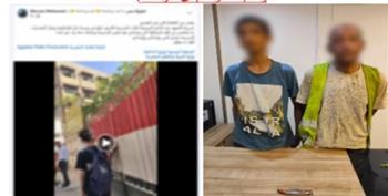 كشفت أجهزة وزارة الداخلية ملابسات مقطع فيديو تم تداوله بمواقع التواصل الاجتماعى تضمن قيام أحد الأشخاص يحمل سلاح أبيض بالتعدى بالسب على حارس إحدى المدارس وتهديده بإلحاق الأذى به بمنطقة إمبابة بالجيزة.