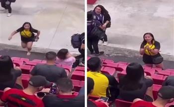 وفي لحظة تسلقت الفتاة مقاعد المدرجات لتصل إليه هو والفتاة التي برفقته، حيث قامت بصفعه مرات متتالية قبل أن تنصرف من الملعب.
