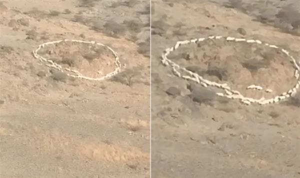 وفي الفيديو، ظهر قطيع الأغنام وهو يدور حول بعضه في الصحراء بشكل غريب أثار اهتمام المتابعين الذين حاولوا تفسير المشهد.