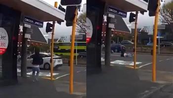 وثق مقطع فيديو تناقله مستخدمو مواقع التواصل الاجتماعي مشاهد غريبة لشابة تقذفها رياح عاتية إلى طريق مزدحم في ويلينغتون بنيوزيلندا.