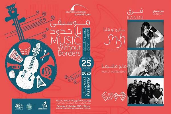 تنظم مكتبة الإسكندرية حفلًا موسيقيًا تحت عنوان "موسيقى بلا حدود.. مصر- اليابان" للفرق الموسيقية "ساجو نو هانا" و"مايو ماشيميا" و"هوس"، السبت 25 أكتوبر الجاري، في تمام السابعة مساء، بمركز المؤتمرات، بالقاعة الكبرى.