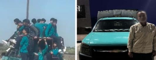 رصدت الأجهزة الأمنية بوزارة الداخلية مقطع فيديو تم تداوله بمواقع التواصل الاجتماعي تضمن قيام قائد سيارة "نصف نقل" بتحميل طلاب إحدى المدارس بالصندوق الخلفي للسيارة معرضاً حياتهم والمواطنين للخطر بالدقهلية.