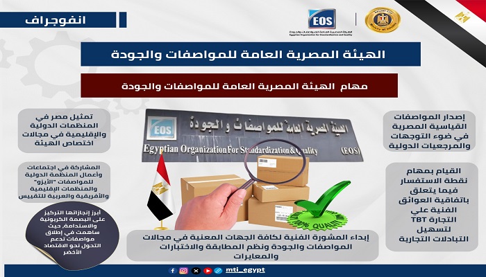 شهدت الصناعة المصرية خلال السنوات الأخيرة طفرة في جودة منتجاتها وتوافقها مع المعايير الدولية، ويعود جزء كبير من هذا التطور إلى الدور المحوري الذي تقوم به الهيئة المصرية العامة للمواصفات والجودة التابعة لوزارة الصناعة، باعتبارها الجهة المسؤولة عن إصدار المواصفات القياسية المصرية وفقًا للمعايير الدولية، بما يعزز تنافسية المنتج المصري في الأسواق العالمية، ويضمن حماية المستهلك المحلي من السلع غير المطابقة.
