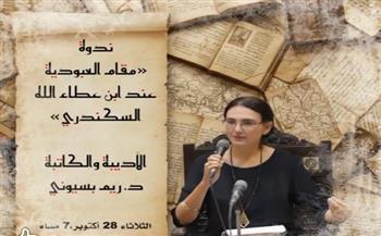 ينظم بيت السناري الأثري بحي السيدة زينب بالقاهرة، التابع لقطاع التواصل الثقافي بمكتبة الإسكندرية، ندوة تحت عنوان «مقام العبودية عند ابن عطاء الله السكندري» للأديبة والكاتبة د. ريم بسيوني، وذلك الثلاثاء 28 أكتوبر في تمام السابعة مساءً.