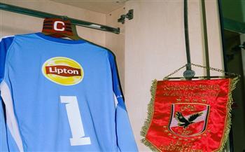 وزينت قمصان الأهلي غرفة ملابس برج العرب، قبل انطلاق المواجهة.