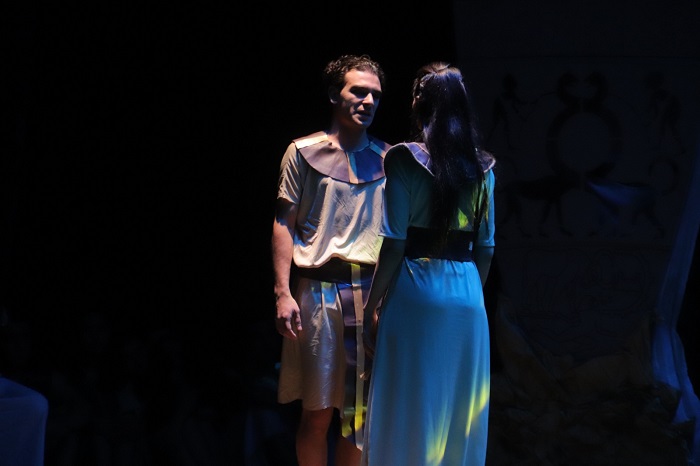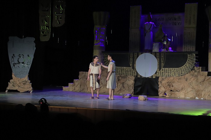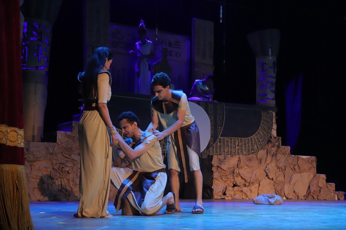وأضاف أن العرض لا يتناول عظمة الحضارة المصرية القديمة فحسب؛ بل يبرز أيضا الجانب الإنساني للمصري القديم، الذي كان يحب ويضعف ويقوى، لكنه يظل مؤمنًا بفكرته حتى النهاية، مشيرا إلى أن العمل يبعث برسالة معاصرة وهي الإصرار على توحيد البلاد.