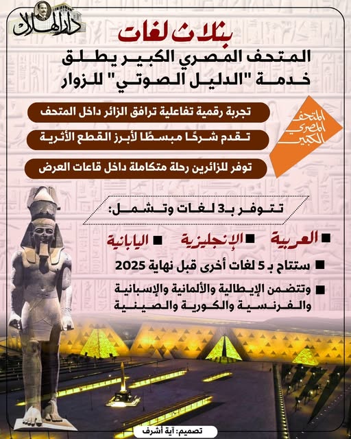 وفي إطار سعي المتحف لتقديم تجربة ثقافية متكاملة، أعلن عن إطلاق خدمته الحديثة «الدليل الصوتي»، التي تتيح للزائرين جولة معرفية تفاعلية داخل القاعات، تعرّفهم على أبرز القطع الأثرية بأسلوب مبسّط وجذاب يجسد عظمة الحضارة المصرية القديمة بروح عصرية.