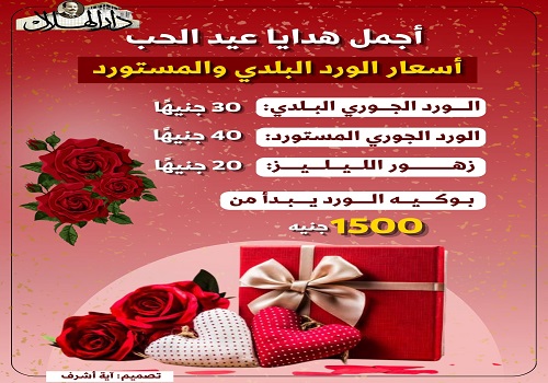 وتبدأ أسعار بوكيه الورد الأحمر من 1500 جنيه للباقة الصغيرة، وتصل إلى 6 آلاف جنيه للباقة المتوسطة، بينما تتجاوز بعض الباقات الفاخرة 15 ألف جنيه في المتاجر المتخصصة.