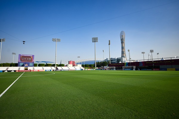 تزين ملعب 5 بمنطقة أسباير، لاستضافة مباراة المنتخب الوطني أمام هايتي.