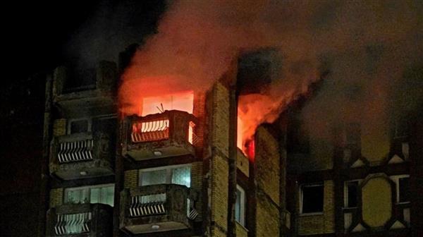وأظهر الفيديو ألسنة لهب تلتهم أحد طوابق المبنى، بينما كان رجال الإطفاء يعملون على إخلاء السكان والسيطرة على الحريق.
