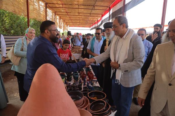 واستهل المحافظ جولته بتفقد معرض الحرف التراثية واليدوية المقام داخل الدير، والذي ضم مجموعة من المنتجات المحلية التي أبرزت مهارة الحرفيين في نقادة، حيث تنوعت المعروضات بين صناعة الكراسي من الجريد، والمجسمات الزجاجية للمآذن والكنائس، إلى جانب لوحات فنية مستوحاة من الفن القبطي والإيطالي المصنوعة على الخشب، ومنتجات تكتل الفِركة وصناعة الشال، والمشغولات الخشبية من خشب السرسوع، وسجاد الكليم، والمشغولات الخزفية والفخار القناوي والطواجن والأواني الفخارية التقليدية.