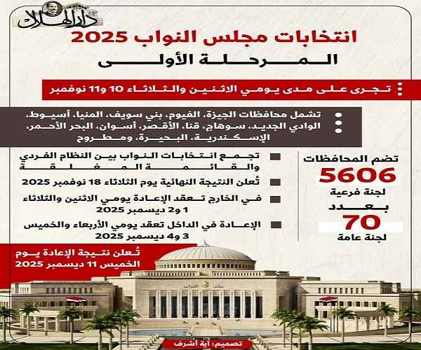 تشمل المرحلة الأولى من انتخابات النواب لعام 2025 محافظات: الجيزة، الفيوم، بني سويف، المنيا، أسيوط، الوادي الجديد، سوهاج، قنا، الأقصر، أسوان، البحر الأحمر، الإسكندرية، البحيرة، ومطروح.