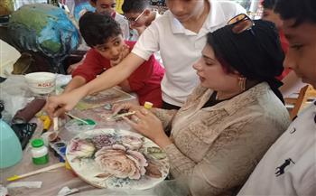 وشهد اليوم الأول تقديم مجموعة من الورش الفنية بحضور عدد كبير من الطلاب والشباب، شملت: فن الديكوباج مع المدربة زهرة محمد، فن الريزن مع المدربة جيهان مبروك، ورشة الجلود تدريب ندى محمد غريبة، وورشة تصميم الحلي مع المدربة سارة أبو صالحة.